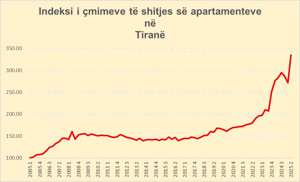Keydata, Indeksi i Çelësi Media Group: Trefishim i çmimeve të apartamenteve në 20 vitet e fundit
